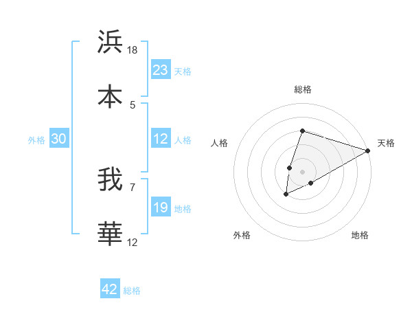 浜本 我華さんの天格は23画の5点!