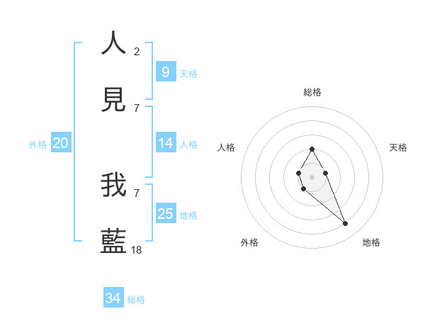 人見 我藍さんの地格は25画の4点!