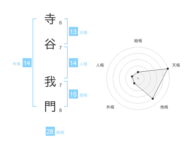 寺谷 我門さんを姓名の画数から五運を鑑定