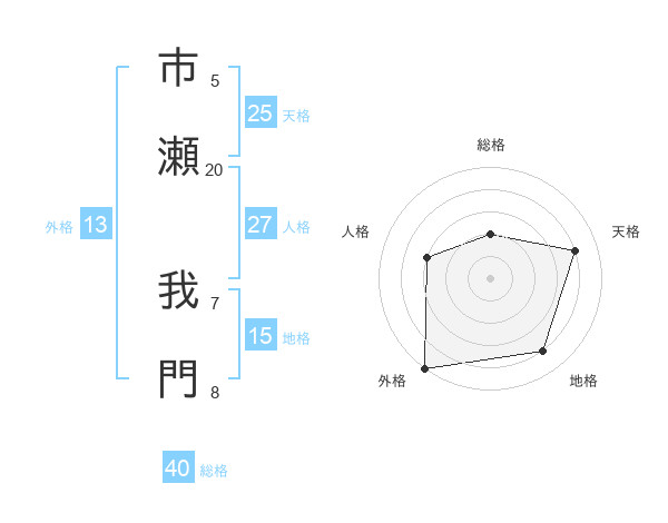 市瀬 我門さんの外格は13画の5点!