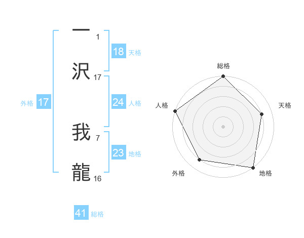一沢 我龍さんの外格は17画の4点!