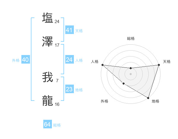塩澤 我龍さんを姓名の画数から五運を鑑定