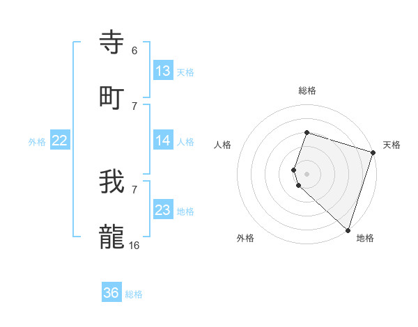 寺町 我龍さんの天格は13画の5点!