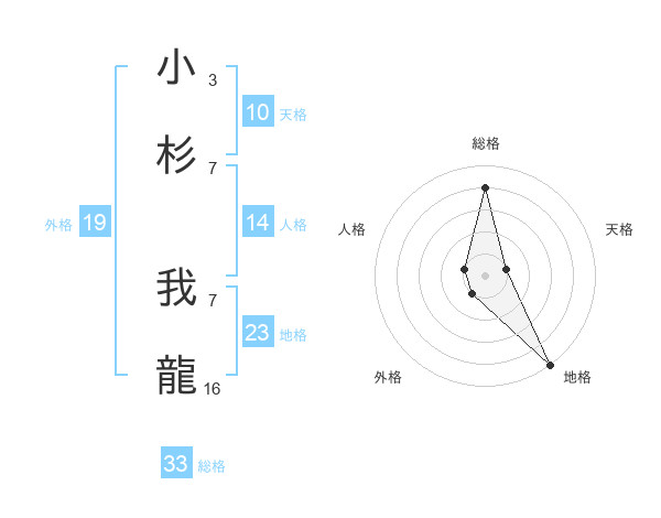 小杉 我龍さんを姓名の画数から五運を鑑定