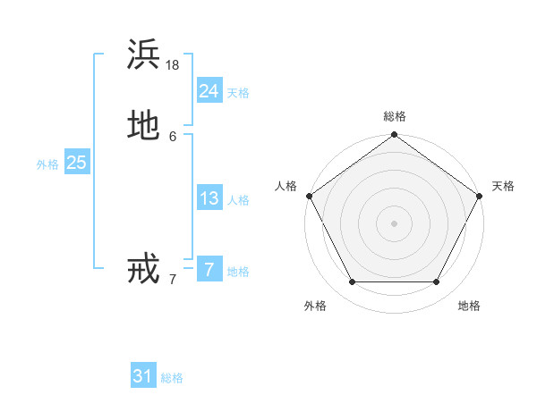 浜地 戒さんの総格は31画の5点!