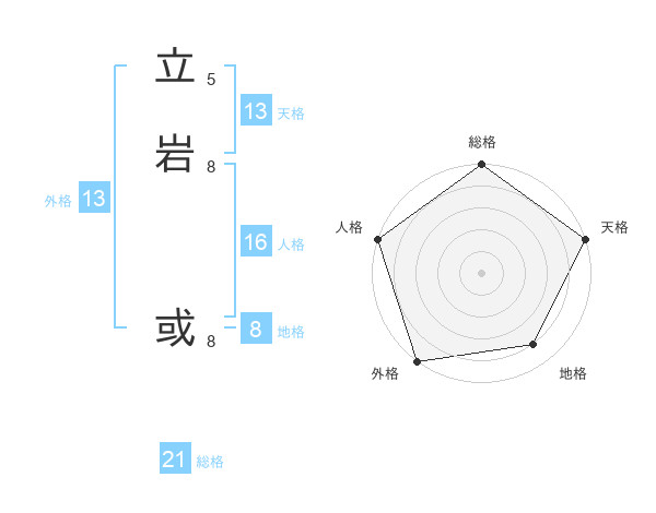立岩 或さんの外格は13画の5点!