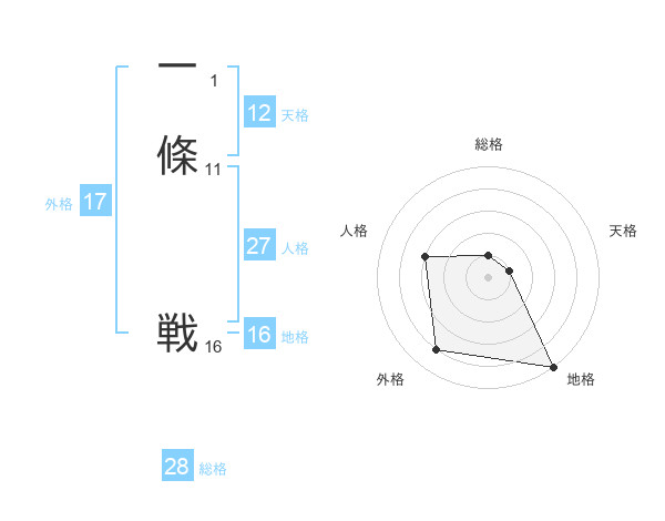一條 戦さんの天格は12画の1点!