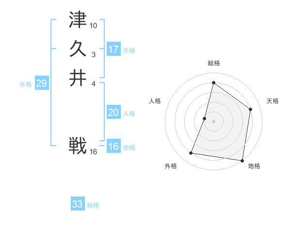 津久井 戦さんの総格は33画の4点!