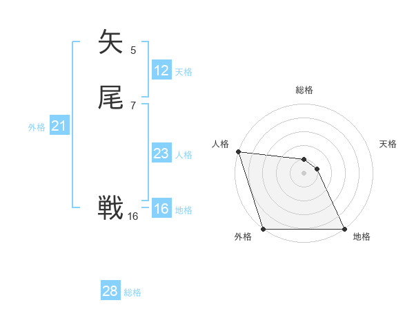 矢尾 戦さんの外格は21画の5点!
