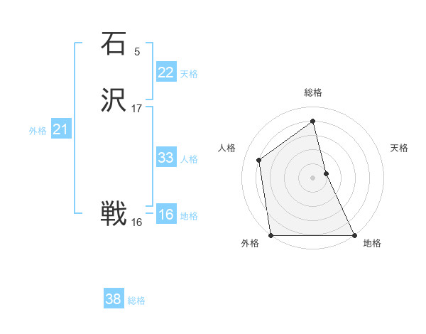 石沢 戦さんの外格は21画の5点!
