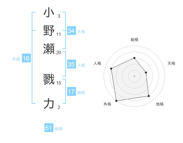 小野瀬 戮力さんを姓名の画数から五運を鑑定