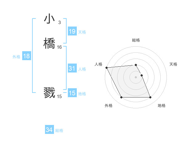 小橋 戮さんの地格は15画の4点!