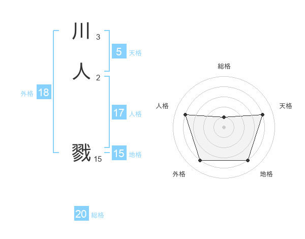 川人 戮さんを姓名の画数から五運を鑑定