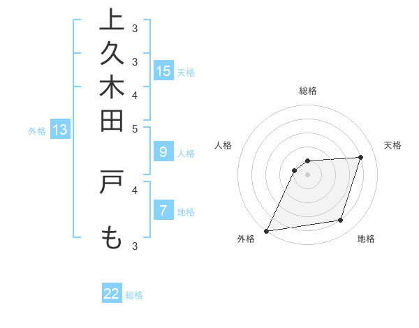 上久木田 戸もさんの外格は13画の5点!