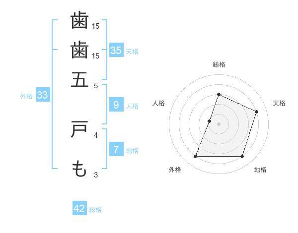 歯歯五 戸もさんを姓名の画数から五運を鑑定