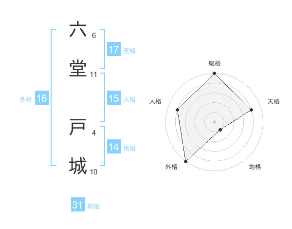 六堂 戸城さんを姓名の画数から五運を鑑定