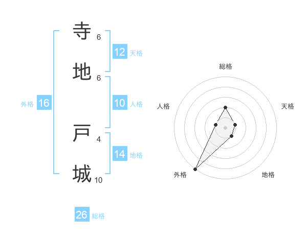 寺地 戸城さんの総格は26画の2点!