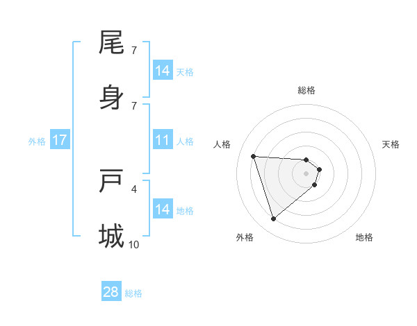 尾身 戸城さんを姓名の画数から五運を鑑定