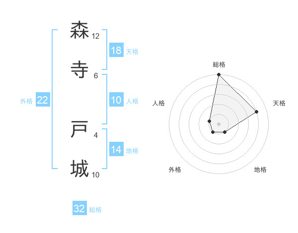 森寺 戸城さんの総格は32画の5点!