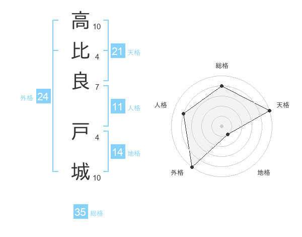 高比良 戸城さんの総格は35画の4点!