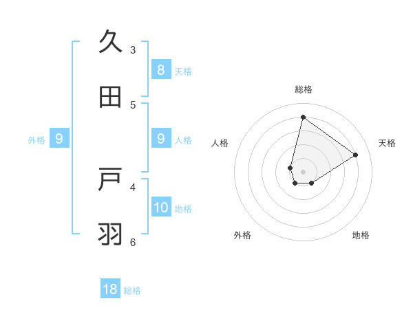 久田 戸羽さんを姓名の画数から五運を鑑定