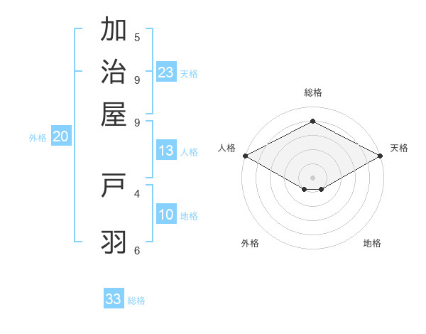 加治屋 戸羽さんの総格は33画の4点!
