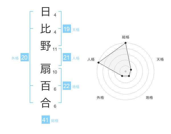 日比野 扇百合さんの総格は41画の5点!
