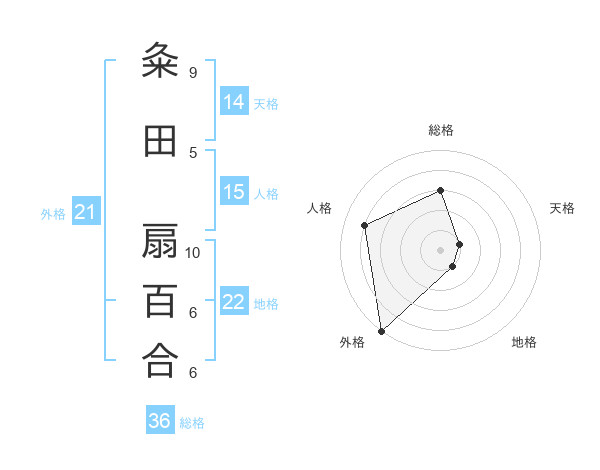 粂田 扇百合さんの地格は22画の1点!
