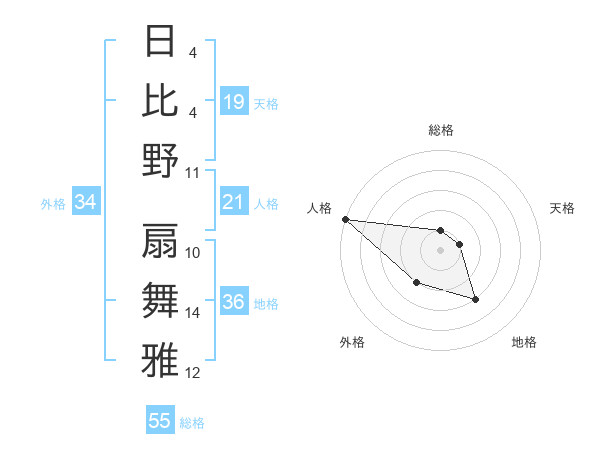 日比野 扇舞雅さんを姓名の画数から五運を鑑定