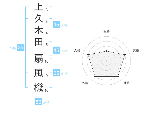 上久木田 扇風機さんを姓名の画数から五運を鑑定