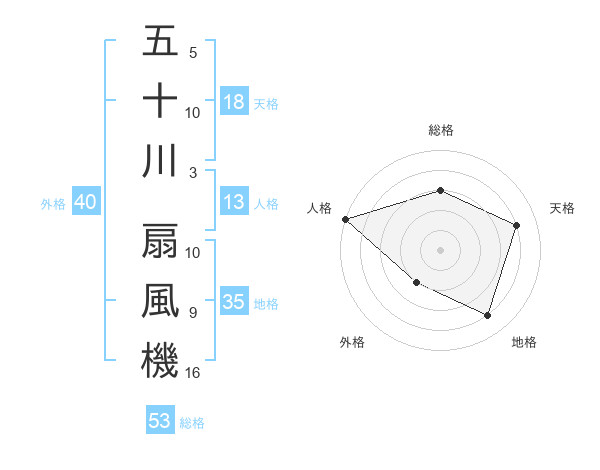 五十川 扇風機さんを姓名の画数から五運を鑑定