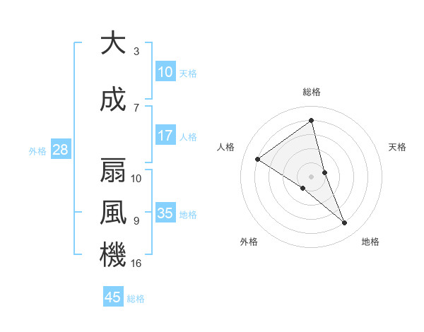 大成 扇風機さんを姓名の画数から五運を鑑定