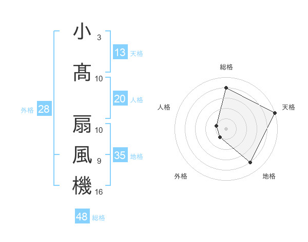 小髙 扇風機さんの総格は48画の4点!