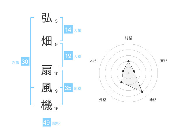 弘畑 扇風機さんを姓名の画数から五運を鑑定