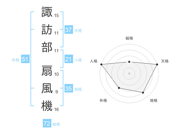 諏訪部 扇風機さんを姓名の画数から五運を鑑定