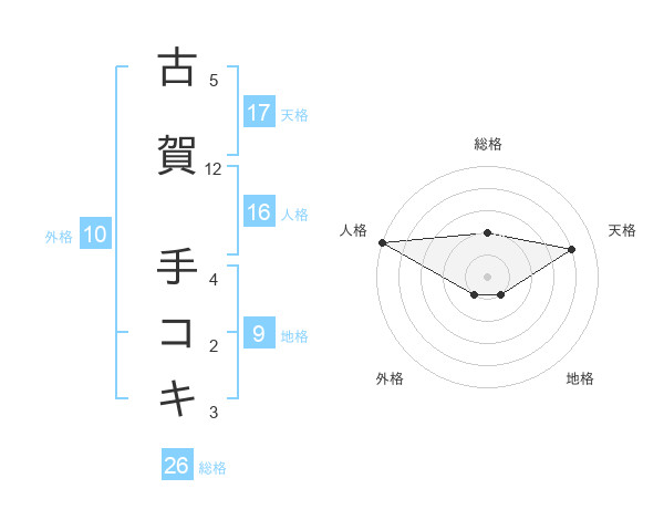 古賀 手コキさんの天格は17画の4点!