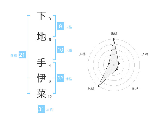 下地 手伊菜さんを姓名の画数から五運を鑑定