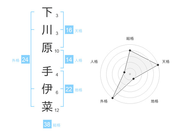 下川原 手伊菜さんを姓名の画数から五運を鑑定