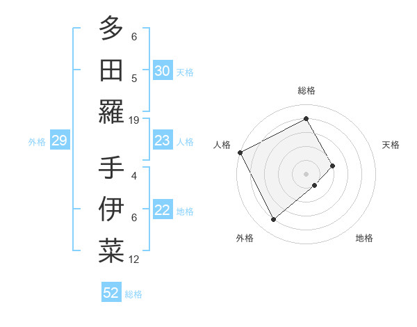 多田羅 手伊菜さんを姓名の画数から五運を鑑定