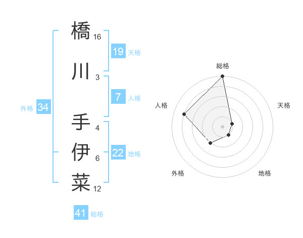 橋川 手伊菜さんを姓名の画数から五運を鑑定