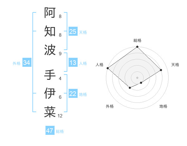 阿知波 手伊菜さんの総格は47画の5点