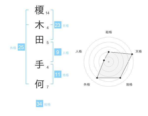 榎木田 手何さんを姓名の画数から五運を鑑定