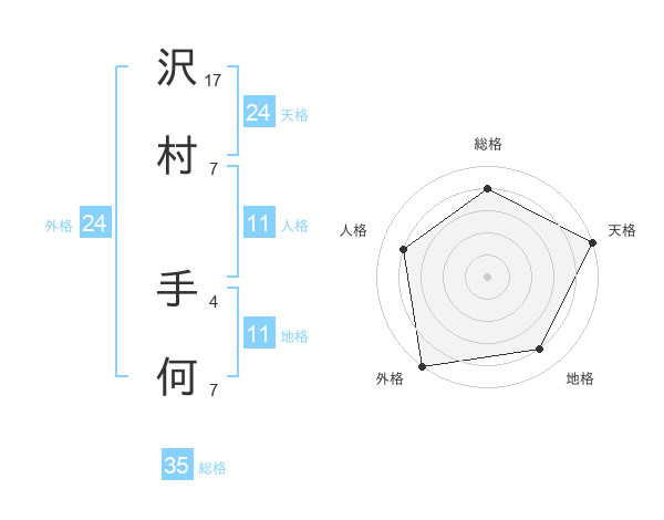 沢村 手何さんの外格は24画の5点!