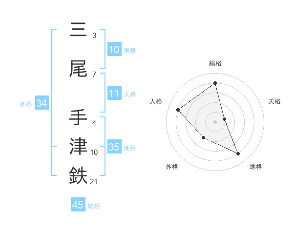 三尾 手津鉄さんを姓名の画数から五運を鑑定