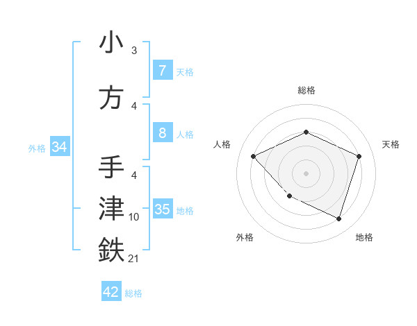 小方 手津鉄さんを姓名の画数から五運を鑑定