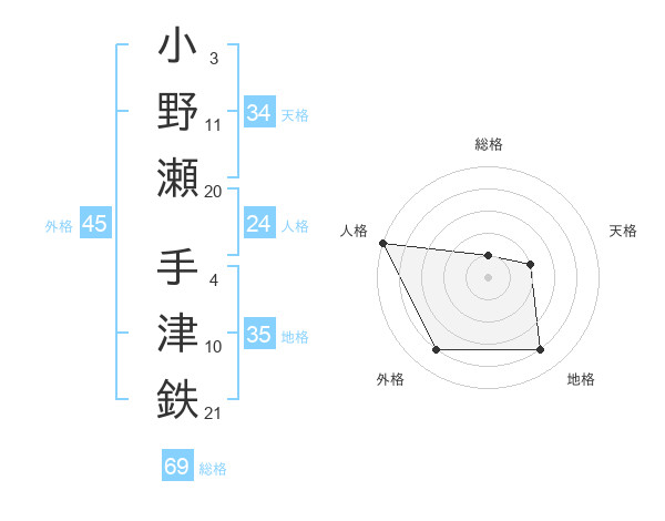 小野瀬 手津鉄さんを姓名の画数から五運を鑑定