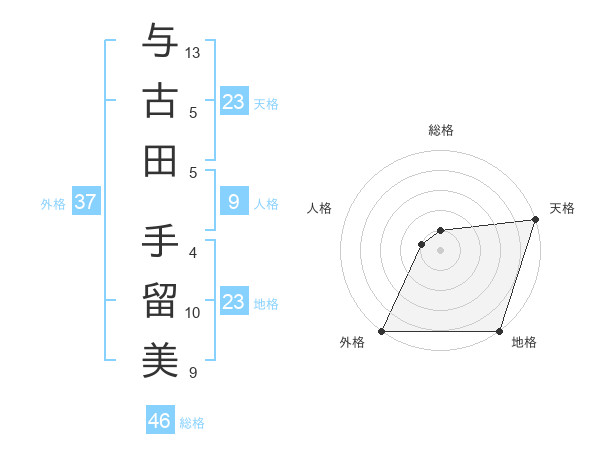 与古田 手留美さんを姓名の画数から五運を鑑定