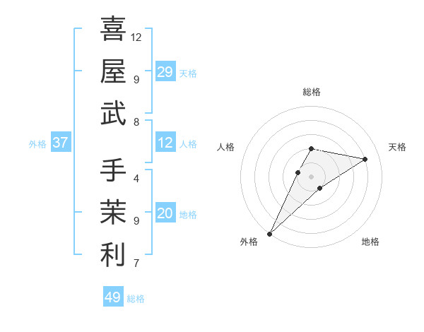 喜屋武 手茉利さんの外格は37画の5点!