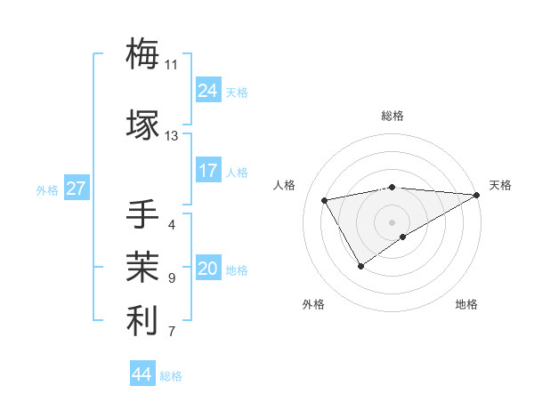 梅塚 手茉利さんを姓名の画数から五運を鑑定