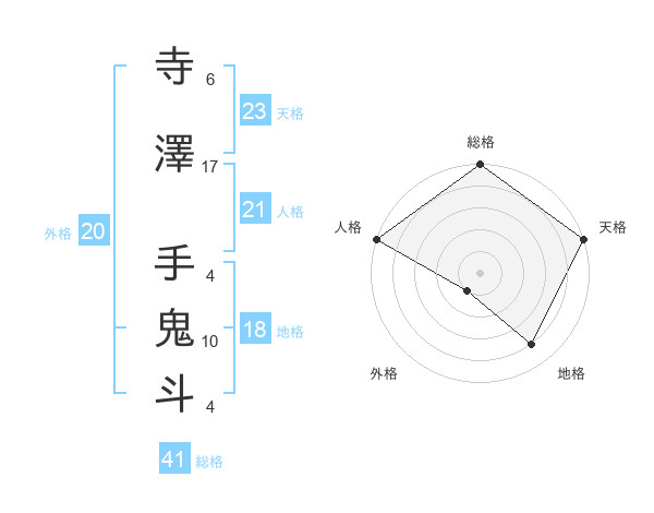 寺澤 手鬼斗さんを姓名の画数から五運を鑑定